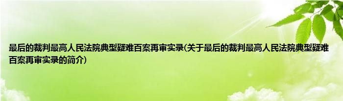 大家好,最后的裁判最高人民法院典型疑难百案再审实录,关于最后的裁判最高人民法院典型疑难百案再审实录的简介很多人还不知道,现在让我们一起来看看吧!