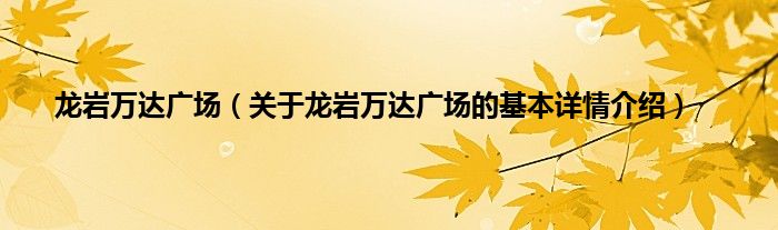 本文关于龙岩万达广场的基本详情介绍就讲解完毕,希望对大家有所帮助。