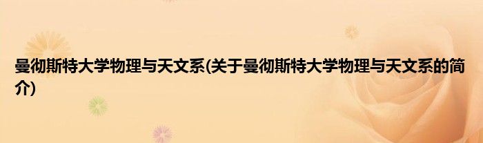 大家好,曼彻斯特大学物理与天文系,关于曼彻斯特大学物理与天文系的简介很多人还不知道,现在让我们一起来看看吧!