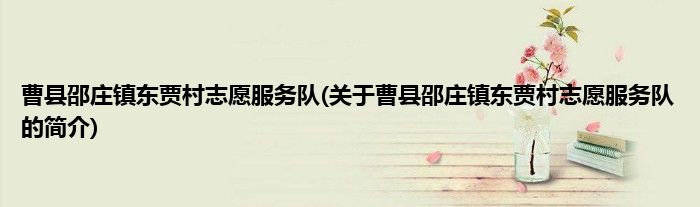 本文关于曹县邵庄镇东贾村志愿服务队的简介就讲解完毕,希望对大家有所帮助。