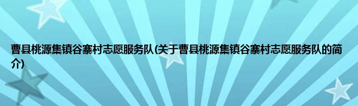 曹县桃源集镇谷寨村志愿服务队(关于曹县桃源集镇谷寨村志愿服务队的简介)