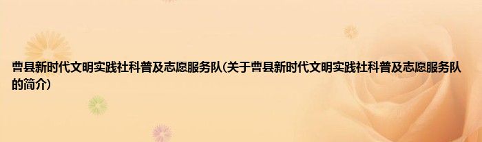 大家好,曹县新时代文明实践社科普及志愿服务队,关于曹县新时代文明实践社科普及志愿服务队的简介很多人还不知道,现在让我们一起来看看吧!