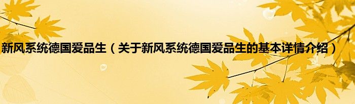 本文关于新风系统德国爱品生的基本详情介绍就讲解完毕,希望对大家有所帮助。