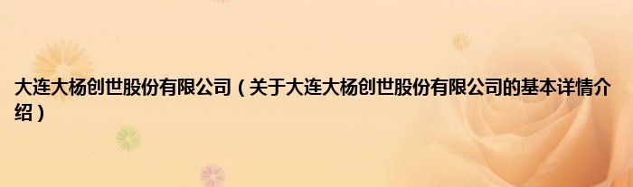本文关于大连大杨创世股份有限公司的基本详情介绍就讲解完毕,希望对大家有所帮助。
