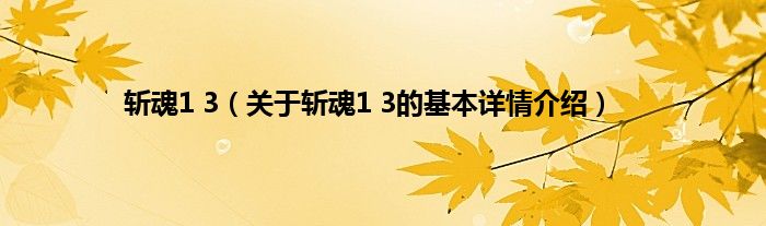 本文关于斩魂1 3的基本详情介绍就讲解完毕,希望对大家有所帮助。