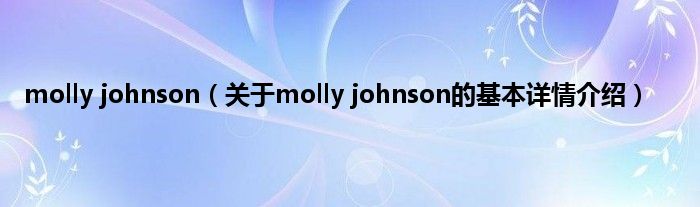 本文关于molly johnson的基本详情介绍就讲解完毕,希望对大家有所帮助。