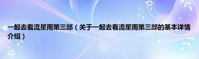 本文关于一起去看流星雨第三部的基本详情介绍就讲解完毕,希望对大家有所帮助。