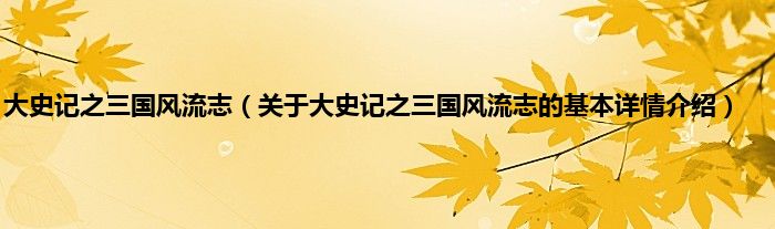 本文关于大史记之三国风流志的基本详情介绍就讲解完毕,希望对大家有所帮助。