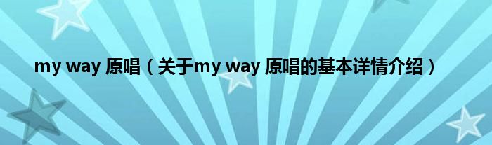 本文关于my way 原唱的基本详情介绍就讲解完毕,希望对大家有所帮助。