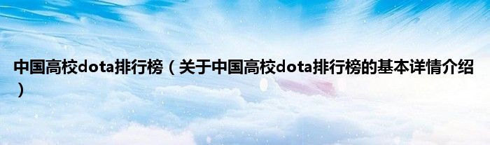 本文关于中国高校dota排行榜的基本详情介绍就讲解完毕,希望对大家有所帮助。