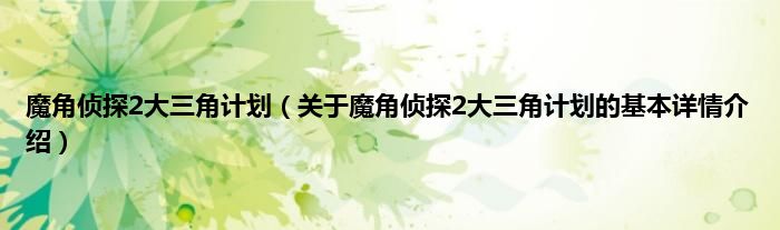 本文关于魔角侦探2大三角计划的基本详情介绍就讲解完毕,希望对大家有所帮助。