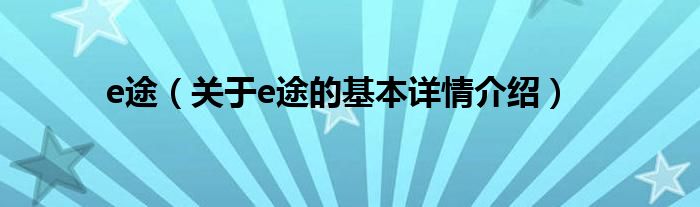 本文关于e途的基本详情介绍就讲解完毕,希望对大家有所帮助。