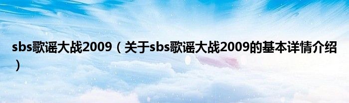 本文关于sbs歌谣大战2009的基本详情介绍就讲解完毕,希望对大家有所帮助。