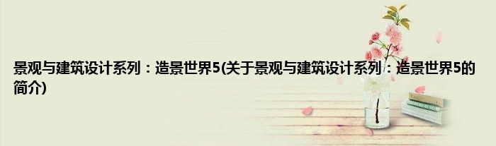 大家好,景观与建筑设计系列:造景世界5,关于景观与建筑设计系列:造景世界5的简介很多人还不知道,现在让我们一起来看看吧!