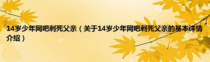 本文关于14岁少年网吧刺死父亲的基本详情介绍就讲解完毕,希望对大家有所帮助。