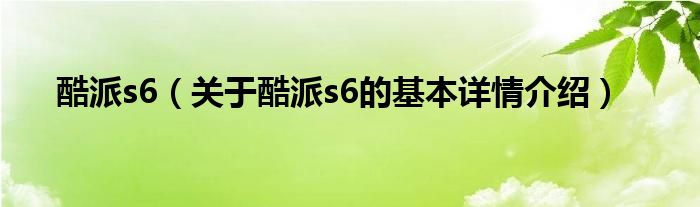 本文关于酷派s6的基本详情介绍就讲解完毕,希望对大家有所帮助。