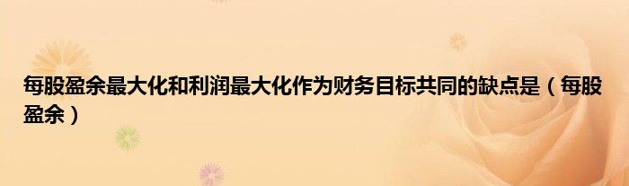 大家好,小问来为大家解答以上问题。每股盈余最大化和利润最大化作为财务目标共同的缺点是,每股盈余这个很多人还不知道,现在让我们一起来看看吧!