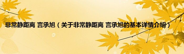 本文关于非常静距离 言承旭的基本详情介绍就讲解完毕,希望对大家有所帮助。