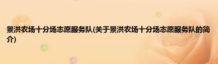本文关于景洪农场十分场志愿服务队的简介就讲解完毕,希望对大家有所帮助。