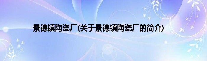 大家好,景德镇陶瓷厂,关于景德镇陶瓷厂的简介很多人还不知道,现在让我们一起来看看吧!