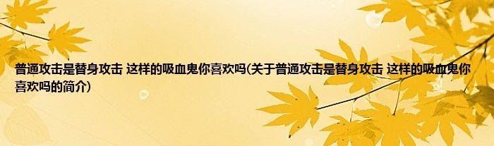 大家好,普通攻击是替身攻击,这样的吸血鬼你喜欢吗,关于普通攻击是替身攻击,这样的吸血鬼你喜欢吗的简介很多人还不知道,现在让我们一起来看看吧!