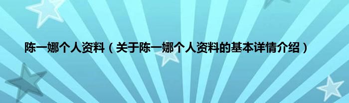 本文关于陈一娜个人资料的基本详情介绍就讲解完毕,希望对大家有所帮助。