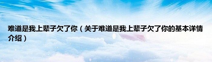 难道是我上辈子欠了你(关于难道是我上辈子欠了你的基本详情介绍)