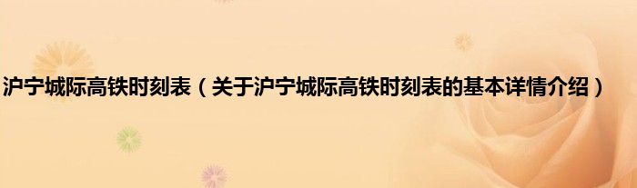 本文关于沪宁城际高铁时刻表的基本详情介绍就讲解完毕,希望对大家有所帮助。