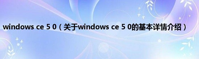 本文关于windows ce 5 0的基本详情介绍就讲解完毕,希望对大家有所帮助。