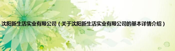 本文关于沈阳新生活实业有限公司的基本详情介绍就讲解完毕,希望对大家有所帮助。