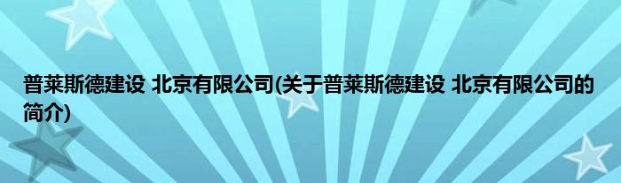本文关于普莱斯德建设 北京有限公司的简介就讲解完毕,希望对大家有所帮助。