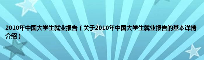 2010年中国大学生就业报告(关于2010年中国大学生就业报告的基本详情介绍)