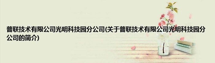 本文关于普联技术有限公司光明科技园分公司的简介就讲解完毕,希望对大家有所帮助。