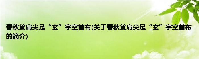 春秋耸肩尖足“玄”字空首布(关于春秋耸肩尖足“玄”字空首布的简介)