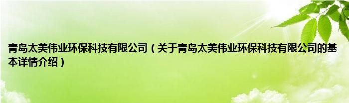 本文关于青岛太美伟业环保科技有限公司的基本详情介绍就讲解完毕,希望对大家有所帮助。