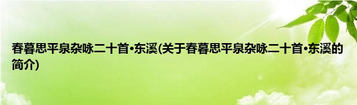 本文关于春暮思平泉杂咏二十首·东溪的简介就讲解完毕,希望对大家有所帮助。