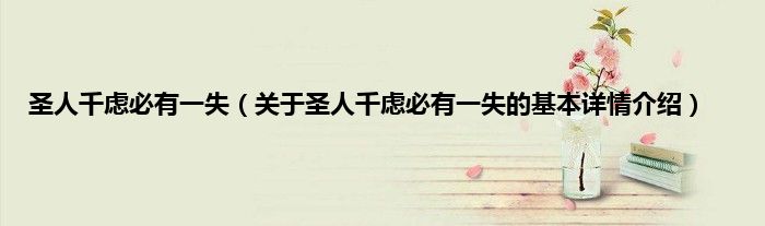圣人千虑必有一失(关于圣人千虑必有一失的基本详情介绍)