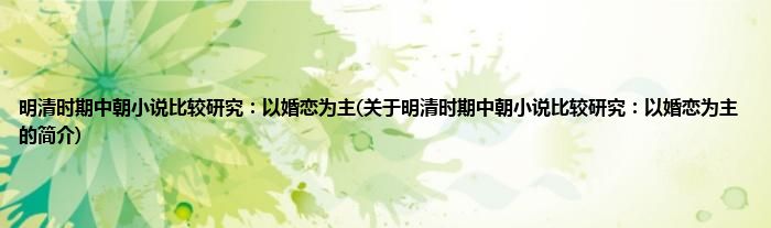 本文关于明清时期中朝小说比较研究:以婚恋为主的简介就讲解完毕,希望对大家有所帮助。