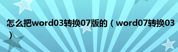 以上就是【怎么把word03转换07版的,word07转换03】相关内容。