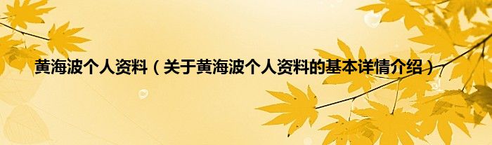 本文关于黄海波个人资料的基本详情介绍就讲解完毕,希望对大家有所帮助。