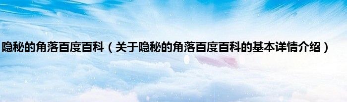 本文关于隐秘的角落百度百科的基本详情介绍就讲解完毕,希望对大家有所帮助。