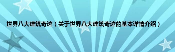 本文关于世界八大建筑奇迹的基本详情介绍就讲解完毕,希望对大家有所帮助。