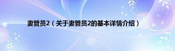 本文关于妻管员2的基本详情介绍就讲解完毕,希望对大家有所帮助。
