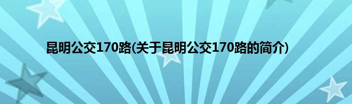 本文关于昆明公交170路的简介就讲解完毕,希望对大家有所帮助。
