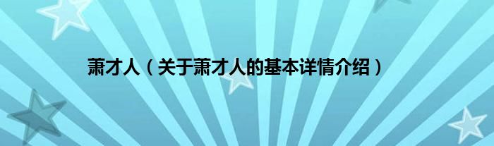 萧才人(关于萧才人的基本详情介绍)