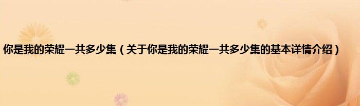 本文关于你是我的荣耀一共多少集的基本详情介绍就讲解完毕,希望对大家有所帮助。