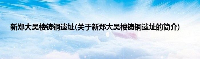 本文关于新郑大吴楼铸铜遗址的简介就讲解完毕,希望对大家有所帮助。