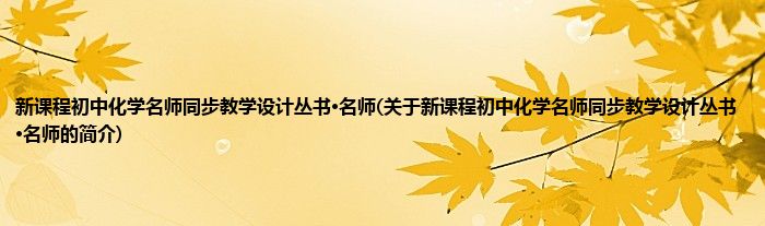本文关于新课程初中化学名师同步教学设计丛书·名师的简介就讲解完毕,希望对大家有所帮助。