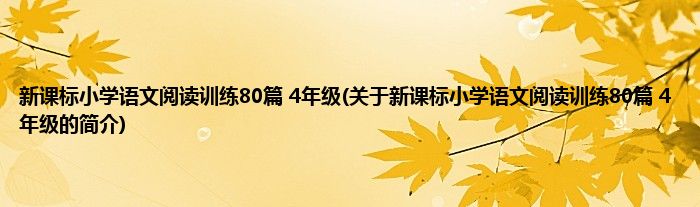 本文关于新课标小学语文阅读训练80篇 4年级的简介就讲解完毕,希望对大家有所帮助。