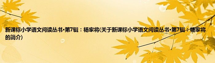 大家好,新课标小学语文阅读丛书·第7辑:杨家将,关于新课标小学语文阅读丛书·第7辑:杨家将的简介很多人还不知道,现在让我们一起来看看吧!